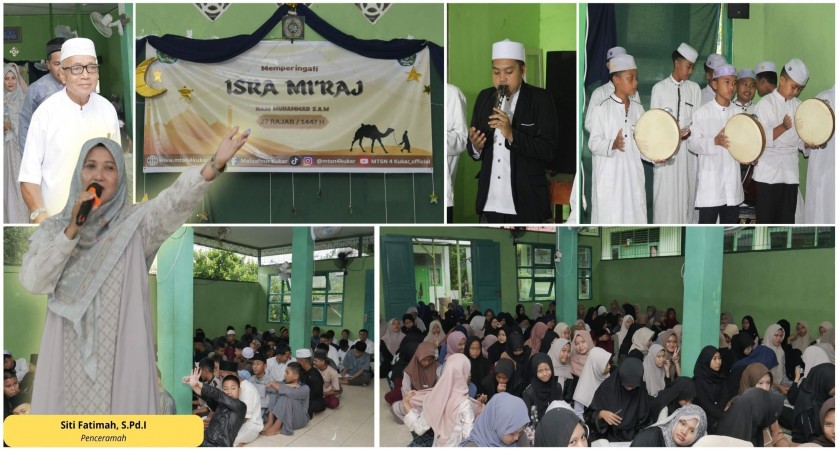 Pada kesempatan tersebut, kepala MTsN Kutai Kartanegara, Hj. Yayuk Eko Wahyuningsih, M.Pd., juga menyampaikan bahwa momentum peringatan Isra' Mi'raj Nabi Muhammad SAW merupakan saran akita untuk mengingat dan memaknai perjalanan Rasulullah SAW. “Hari ini, kalian berada di musholla bukan hanya sekedar hadir, tetapi untuk belajar. Belajar tidak selalu di kelas, tetapi bisa dimana saja”, pungkas Yayuk.